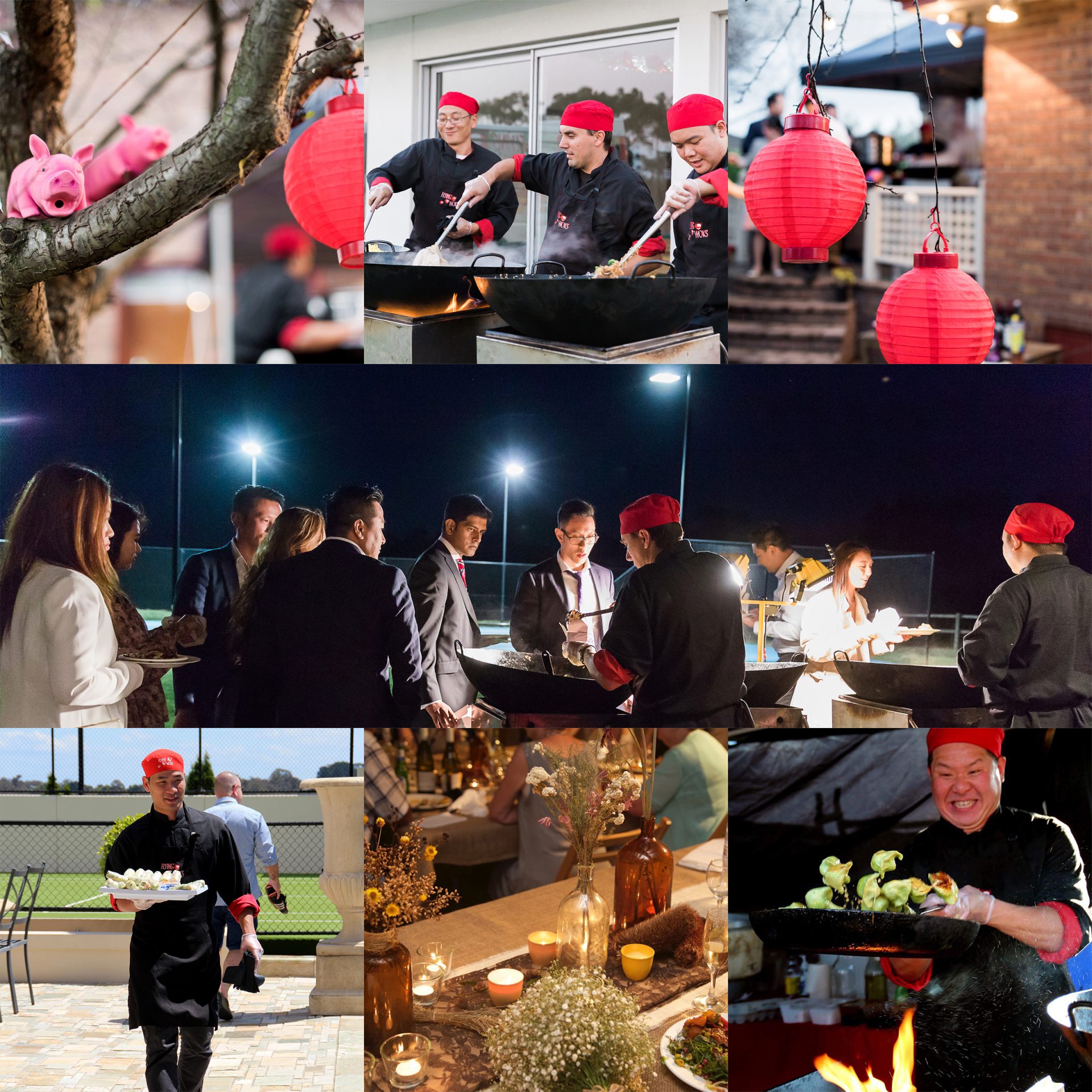 Flying Woks brings live-cooked theatre, beautiful menus, and seamless service to receptions, cocktail hours, and next-day brunches across Melbourne. Our chefs craft an unforgettable experience right before your guests — a visual and aromatic celebration that turns food into performance. From intimate garden weddings to lavish ballroom receptions, every dish is served fresh, fast, and full of flavour. Guests can watch the sizzle, smell the spice, and taste the excitement of truly live cooking. Whether you’re after refined elegance or relaxed celebration vibes, we tailor our service to suit your day perfectly.